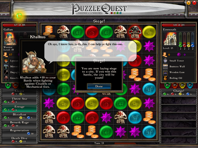 If you are to attack other Kingdoms, be sure to have Khalkus as a companion, he'll give you a boost to your Battle skill. Citadels can be tricky to fight, but Enmouth is one of the starter cities, so it shouldn't offer too much of a challenge. After this the battle carries on as normal until you win or lose. If you win...